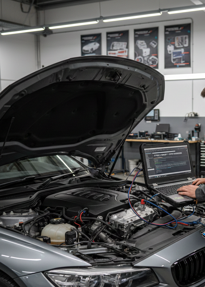 ElectroniCar réalise des diagnostics électroniques complets directement sur le véhicule à l’aide d’outils professionnels multi-marques et logiciels spécialisés.